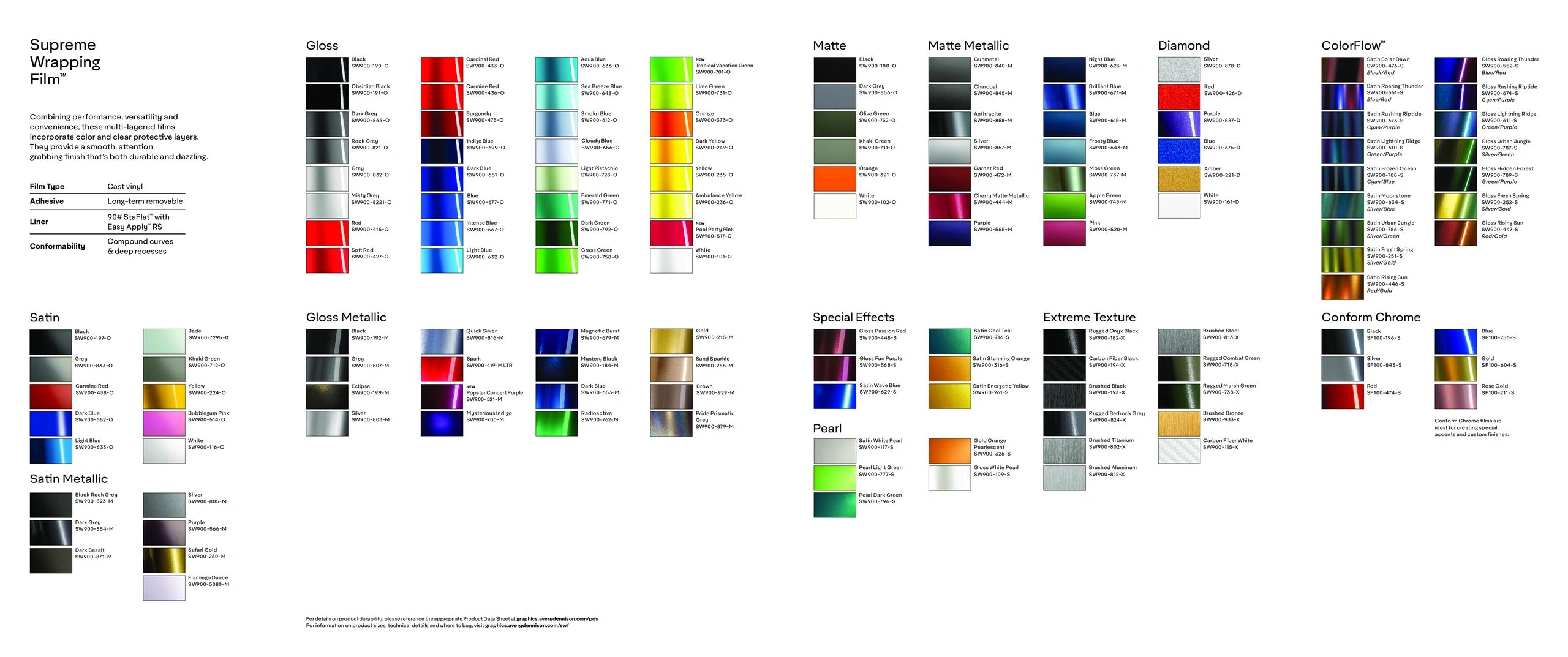 Want your car to stand out among boring, standard factory colors? We offer custom colors from many premium brands of wrapping film that will give your car a fresh new look.